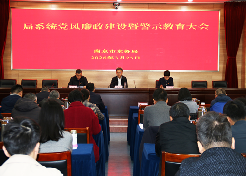 3月25日上午,市水务局召开2026年度党风廉政建设暨警示教育工作会议,深入贯彻党的二十大和二十届历次全会精神,认真落实二十届中纪委五次全会以及省、市纪委六次全会部署,总结2025年工作,分析当前形势及存在问题,对2026年工作作了全面部署。局党组书记、局长吴俊出席会议并讲话。派驻市农业农村局纪检监察组组长李华娣从派驻监督角度对水务系统党风廉政工作作了工作提示。机关党委副书记、一级调研员吕正林主持会议。