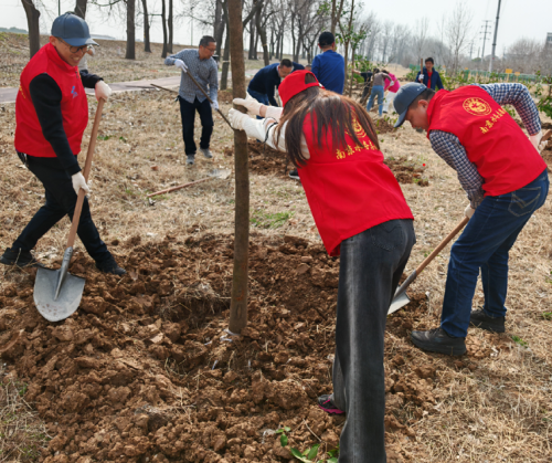 义务植树添新绿,挥锹铲土干劲足
